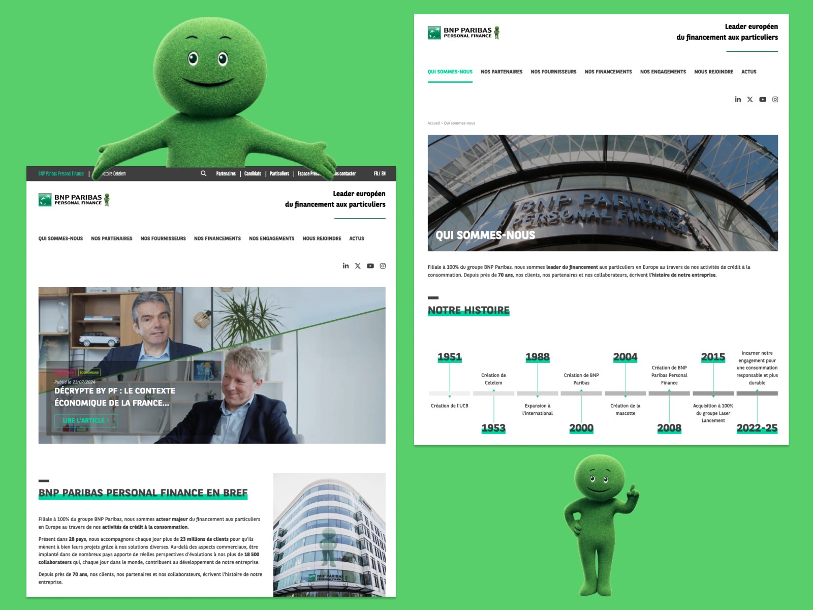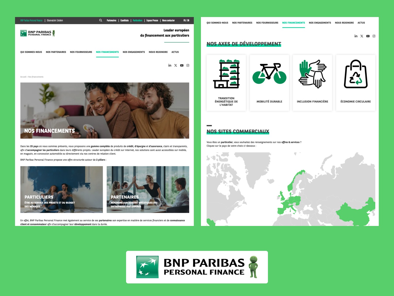 BNP Paribas Personal Finance est une filiale de BNP Paribas, spécialisée dans le crédit à la consommation et le financement personnel. L'entreprise souhaitait revoir l'expérience utilisateur de ses sites web pour les rendre plus compréhensibles et simples d'utilisation. L'objectif était d'améliorer l'accessibilité de l'information pour les particuliers, futurs candidats, et professionnels, et de mieux aligner les contenus du site avec les besoins des différents segments de clients.