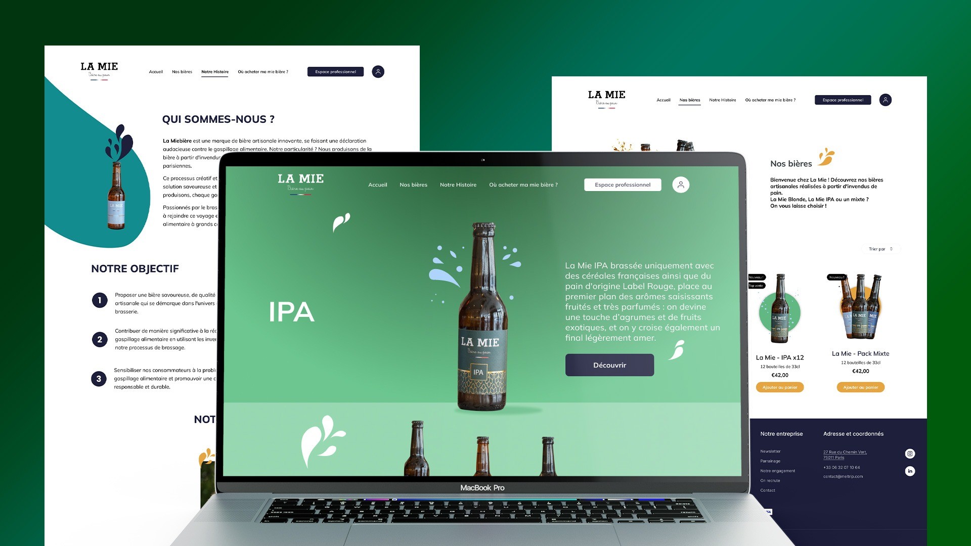 La Mie Bière est une entreprise spécialisée dans la boulangerie et la vente de produits artisanaux, avec un fort engagement envers des pratiques durables et la réduction du gaspillage alimentaire. Elle a entrepris un projet de refonte de son identité visuelle et de son site e-commerce pour moderniser son image et mieux communiquer son histoire et ses valeurs. L'objectif était d'améliorer la présentation de ses produits et de mettre en avant ses initiatives écoresponsables, tout en conservant l'intégrité de son logo existant.