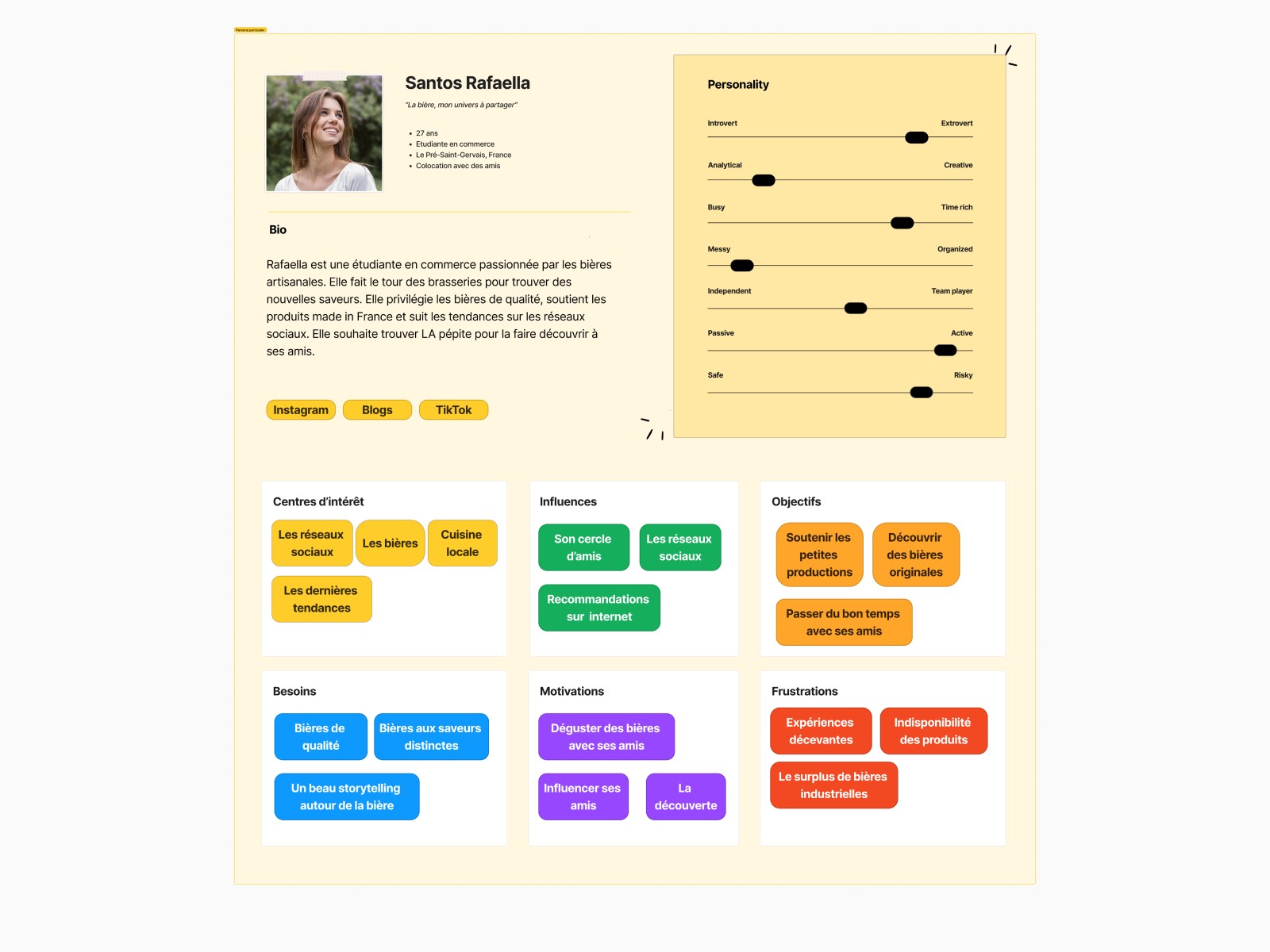 Établissement de profils types d'utilisateurs pour mieux comprendre leurs besoins et attentes, permettant ainsi d'orienter les décisions de design en fonction des véritables attentes des clients.