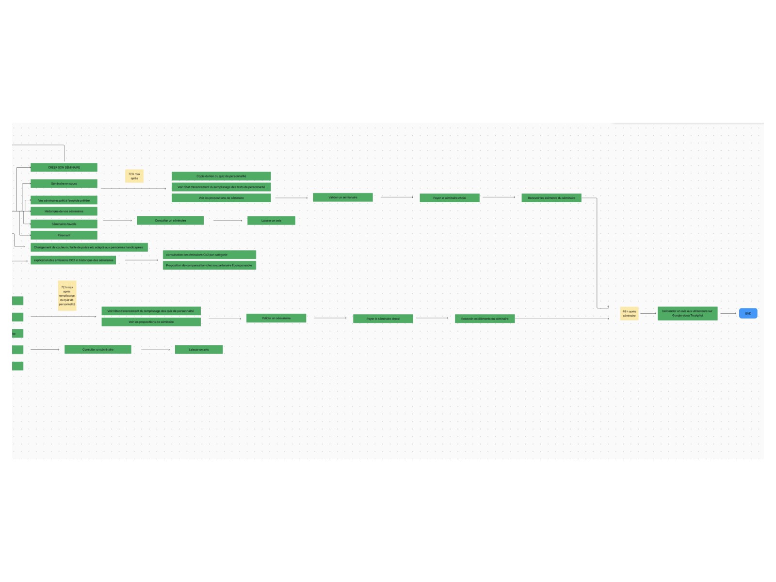 User-Flow : Développement du user-flow sur Figma, en identifiant les parcours utilisateurs clés et en optimisant les interactions pour maximiser l'efficacité et l'engagement des utilisateurs.