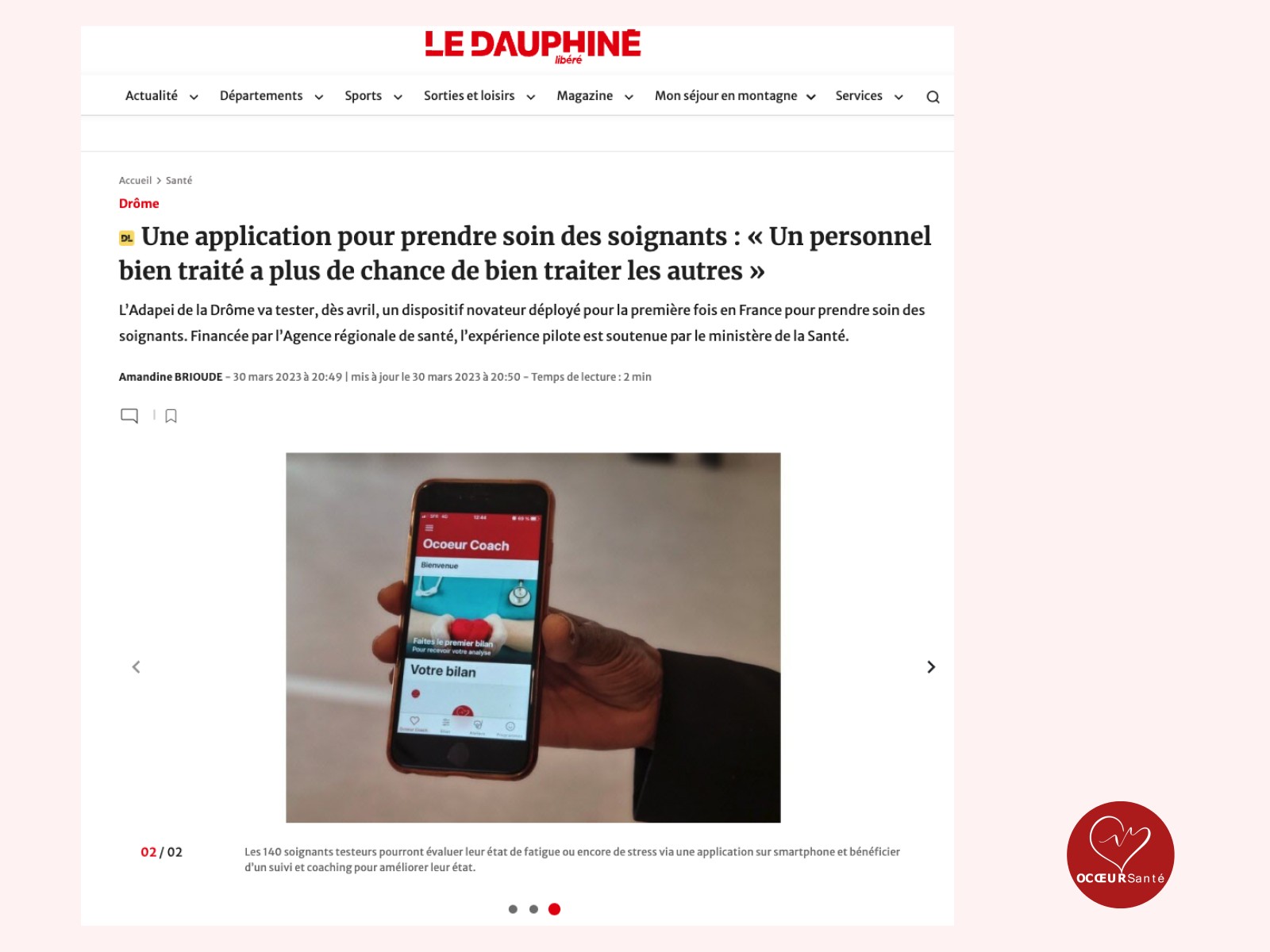 Ocœur Santé et The Helpr : Ocœur Santé fournit des solutions de santé innovantes, et The Helpr offre des services de coaching professionnel ; ensemble, ils collaborent pour améliorer la qualité de vie des soignants avec Ocoeur Coach