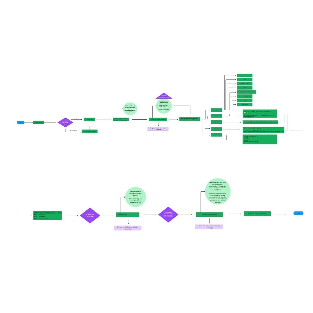 Cartographie du Parcours Utilisateur: Utilisation de Figma pour créer un user-flow détaillé qui guide les utilisateurs depuis la découverte de l'application jusqu'à l'intégration des activités dans leur routine quotidienne.